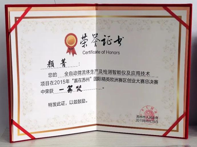 创业荣誉:2015 年度“赢在苏州”国际创新创业大赛一等奖,2017 年度苏州市“青年创业标兵”
