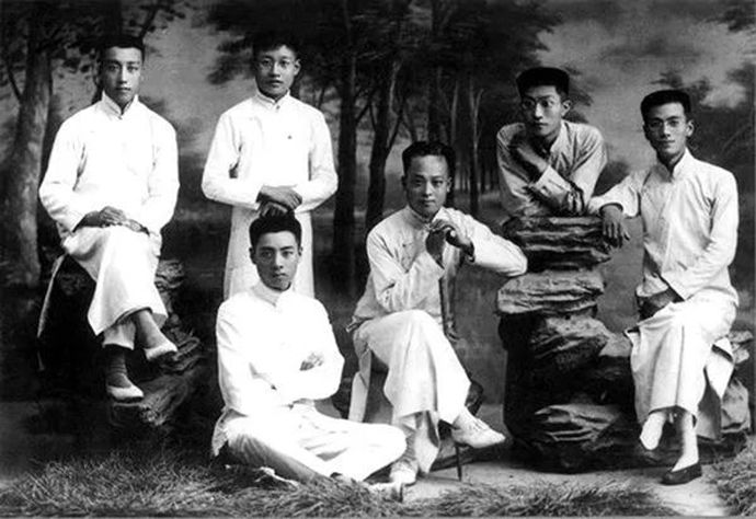 1917年9月,周恩来(后排右一)赴日本求学前与同学合影