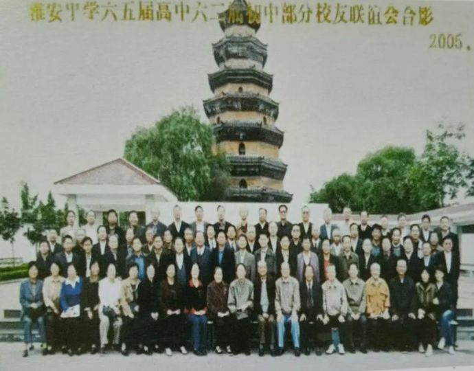 淮安县中学六五届高中、六二届初中部分校友联谊会合影。三排左九为钟锦逵。