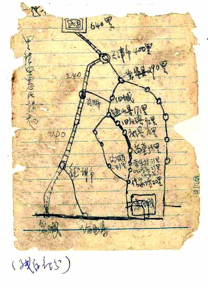 另外,还有:“向阳步行长征队”初拟《(山东)岸堤—(山东)萌(沣)水行径计划草图》和初拟《山东惠民—河北天津—北京行径计划草图》(残存、手工)(1966年11月7日-12月2日)