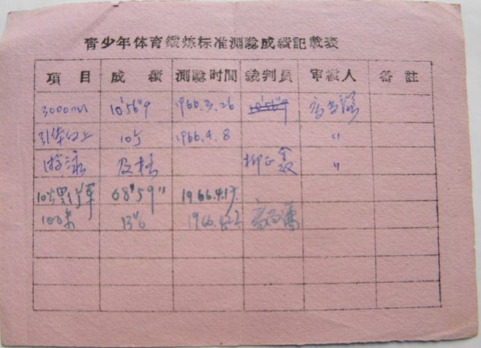 我至今还保存着学校发给的二份本人参加“青少年体育锻炼标准”测验的相关证件。