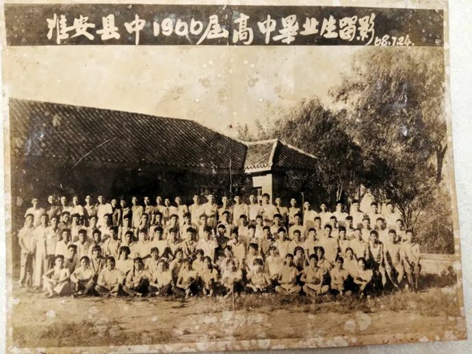 原淮安县中学1966届高中毕业生在原校长室前于1968年7月24日留影