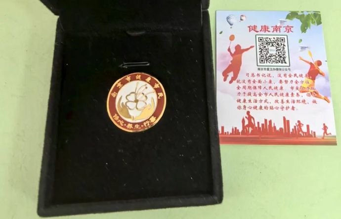 南京市政府2022年颁发给崔淮城的“南京市健康市民-修心养生行善”荣誉徽章