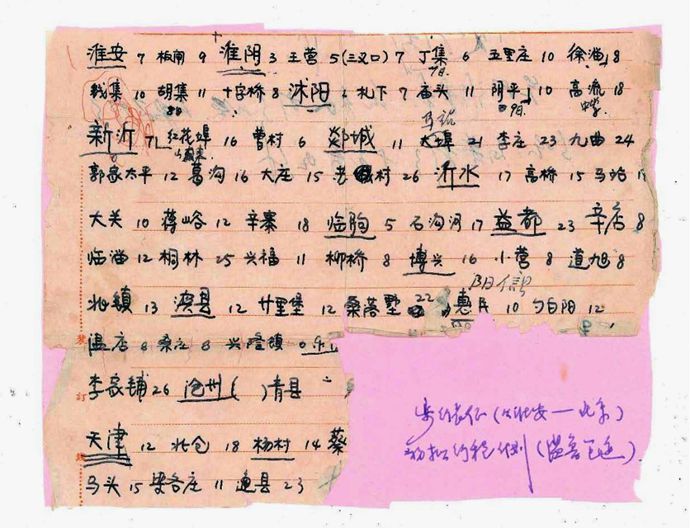 (右)初拟《山东惠民—河北天津—北京行径计划草图》(残存、手工)