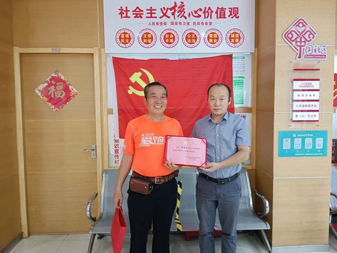 2022年9月南京社区党委书记向崔淮城授予优秀党员荣誉证书