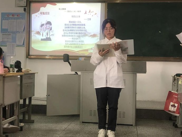 刘雅琪同学深情朗诵了艾青的经典诗作《我爱这土地》,抒发了浓浓的爱国情怀。
