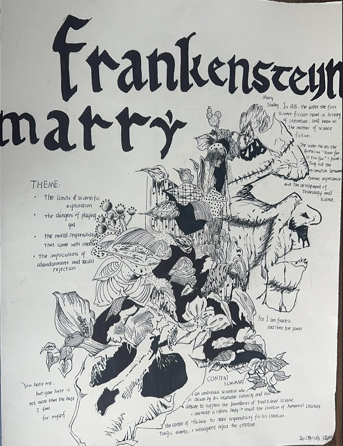 高二Ⅰ部的同学们翻开《弗兰肯斯坦》这本黑布林英语读物,如同踏入了充满奇幻与哲思的世界。