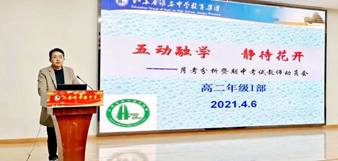 4月6日晚,江苏省淮安中学高二Ⅰ部全体老师在校史馆一楼报告厅参加主题为“携手并肩,共赢未来”的月考分析暨期中考试教师动员会。