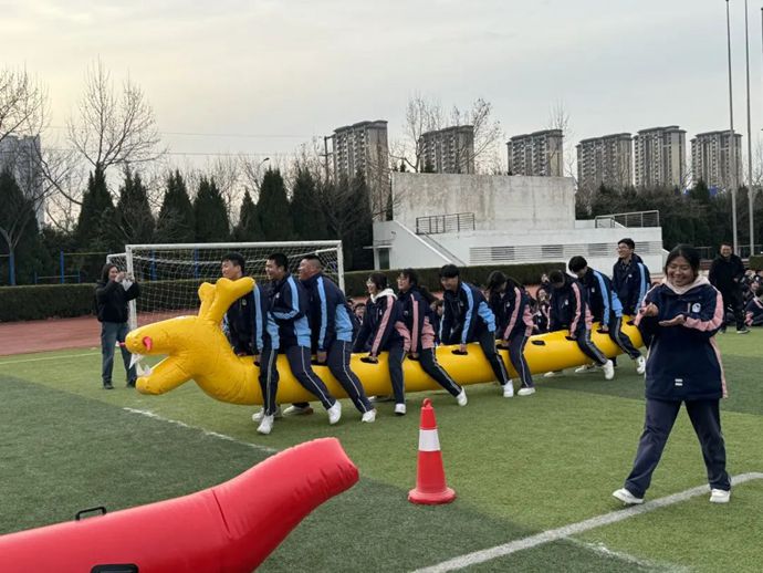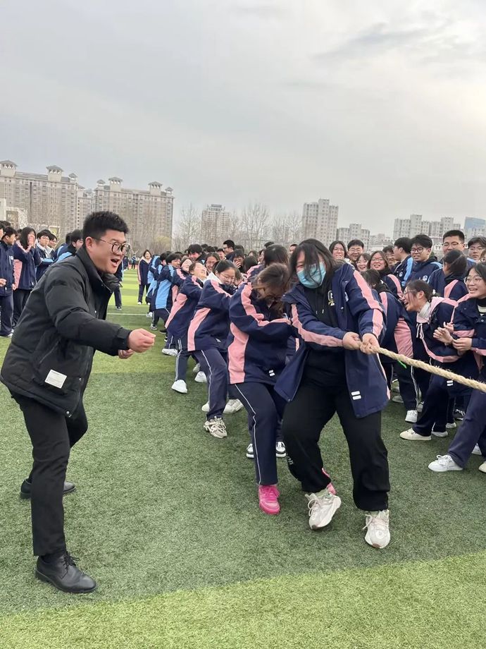 “火车”由多人搭入单腿组成,在整齐划一的步伐中,伴着铿锵有力的口号,你争我赶地发动起来。暖暖春光照耀奋斗的热情,我们在春风里积蓄前进的力量!活动中既有失败时的相互鼓励,也有成功后的忘我欢呼,还有啦啦队肆意的呼喊,每一个瞬间都让我懂得团队合作的重要性。