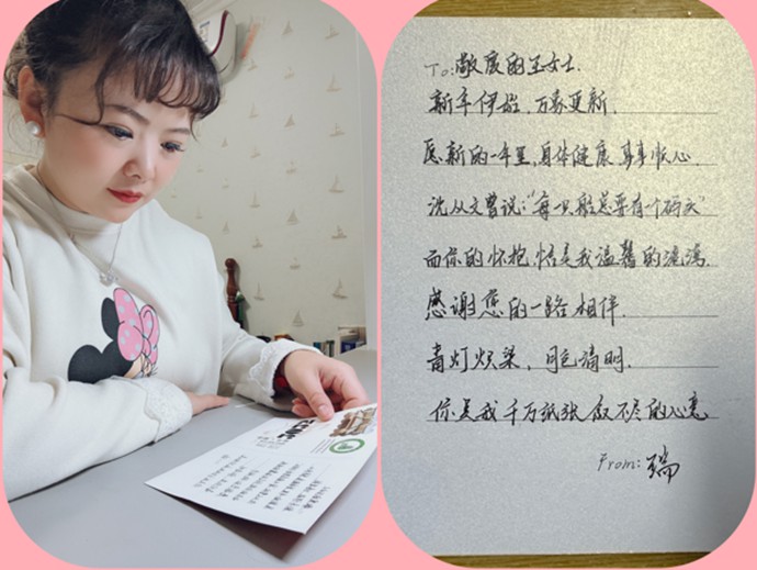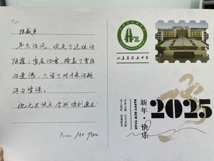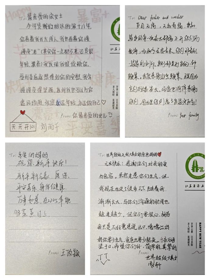 翻开贺卡,内页是素纸留白,笔触游走之处,墨香四溢。老师们的字迹刚劲有力、飘逸洒脱,一笔一划皆是对学生的殷切期许。