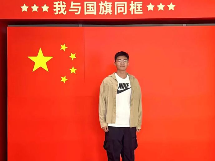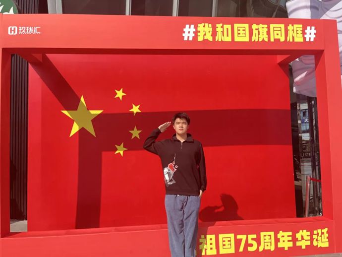 红旗所在,是信仰。视线中的那一抹红冉冉升起,旗帜闪耀于蓝天之上,随风飘扬。油然而生的爱国情怀让我们心潮澎湃,我们所追随的光,正是五星闪烁的星光。同学们在蓝天白云之下与飘扬的五星红旗合影,身姿挺拔,目光坚定。