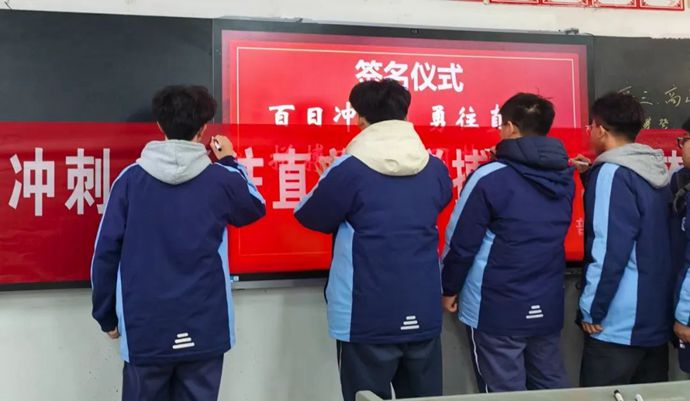活动的最后,同学们在横幅上庄重地写下了自己的理想大学并签上了自己的姓名,希望通过这最后一百天的努力,在这个夏天,迈进自己理想的大学。