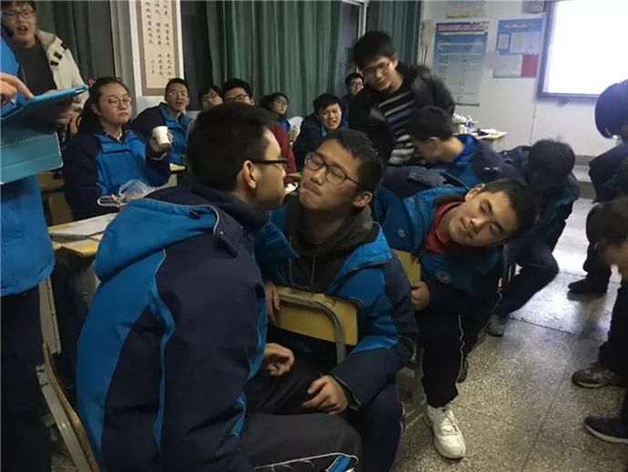 嘿,2班同学胆子不小啊的,竟然背对背“拥抱”?算了,今天这个特殊的日子里,小编就睁只眼闭只眼,不去举报你们了O(∩_∩)O