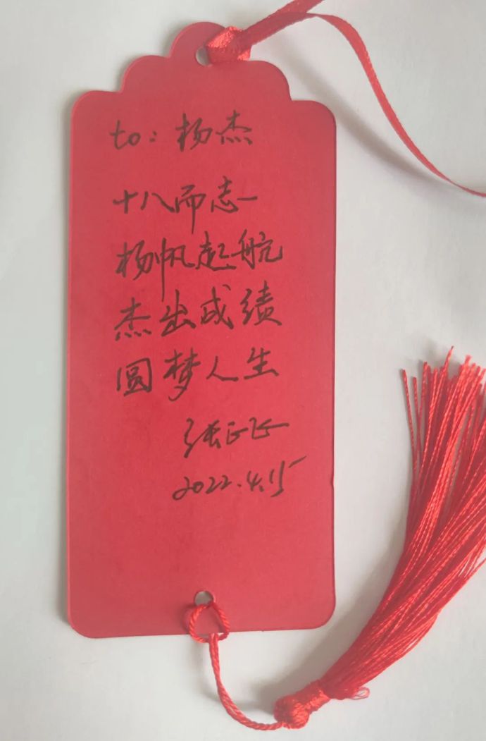 在忙碌的高三备考中,我们也迎来了18岁的成人礼。成人意味着责任与担当,当我收到徐浩洲老师和唐荣玉老师写给我的书签寄语时,我的内心十分激动,也非常感谢徐老师对我的深厚期望。从字里行间,我能够感受到浓厚的师生情。在我前行的路上,正是因为有了你们的陪伴与帮助,我才能不断突破,去遇见更好的自己!你们的鼓励给了我无穷的力量,也给了我前行的勇气!最后的时间里,我一定会竭尽全力,不辜负老师和父母,也不辜负自己,在六月奔赴美好的未来。