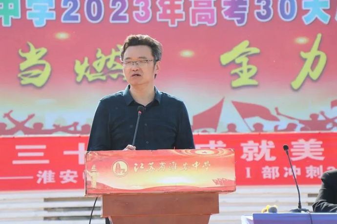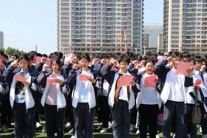 韶光欲试少年志,旌旗猎猎战鼓催。5月7日下午,高三年级Ⅰ部在校运动场举行了“青春当燃,全力向前”高考倒计时30天动员大会。沈成银副校长和高三Ⅰ部全体师生参加了此次活动。活动由尚爱进老师、韩月皎老师主持。