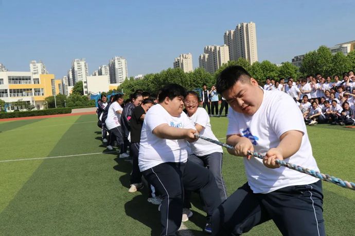 拔河比赛拉开序幕,高三Ⅰ部21位班主任和21位学生代表展开了一场关于力量的较量。