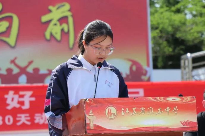 学生代表、高三Ⅰ部1班马筱晶同学作表态发言。她说,青春之所以幸福,是因为他们有前途。而前途正是源于梦想,在这青春之年,我们有着对象牙塔的憧憬,有着对理想美好的想象和对未来的无限热情!我们唯有通过持续的拼搏、向前,才能让青春无悔!