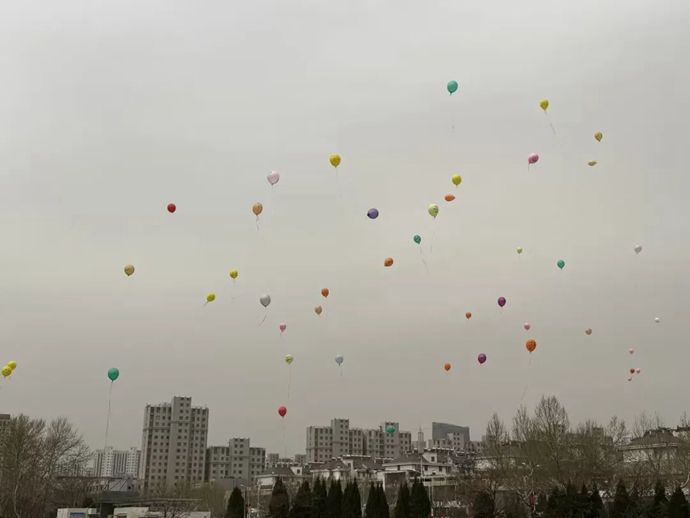 活动尾声,同学们在彩色气球上写下心愿和祝福,随着班主任的倒计时,数十只气球载着梦想升空,将碧蓝的天幕点缀得斑斓璀璨。