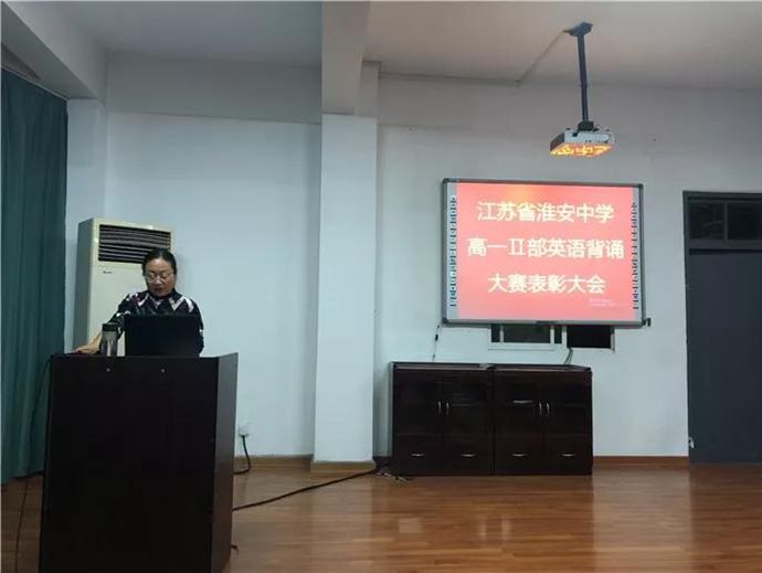 近日,淮安中学高一2部英语背诵大赛颁奖仪式在翔宇楼三楼会议室举行。高一2部英语组备课组组长段梅老师担任主持,周卫星主任、林纪强副主任、周立满老师出席了本次活动。