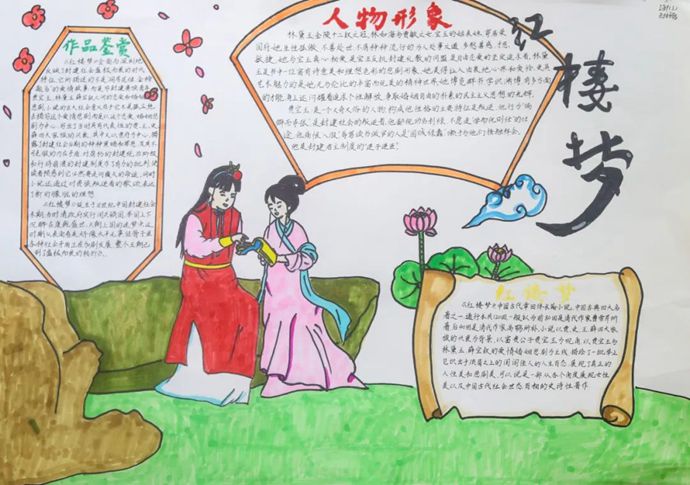最引人注目的,当属那一幅幅色彩斑斓的《红楼梦》主题手抄报。同学们摇身一变,成了“小画家”与“小编剧”,用画笔勾勒大观园的亭台楼阁,用工笔细描十二金钗的眉眼衣袂。有的以“黛玉葬花”为题,用淡雅水墨渲染出凄美意境;有的将“刘姥姥进大观园”的诙谐场景定格成连环漫画;更有创意者以“金陵十二钗花签”为灵感,设计出古风书签式手抄报,让传统与现代美学碰撞出绚丽火花。这些作品不仅是艺术表达,更是对原著细节的深度挖掘——每一幅插画旁都缀以精炼的诗词摘抄与人物点评,让人不禁感叹:经典阅读,原来可以如此“好看”!