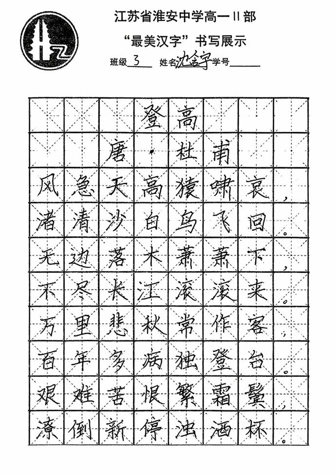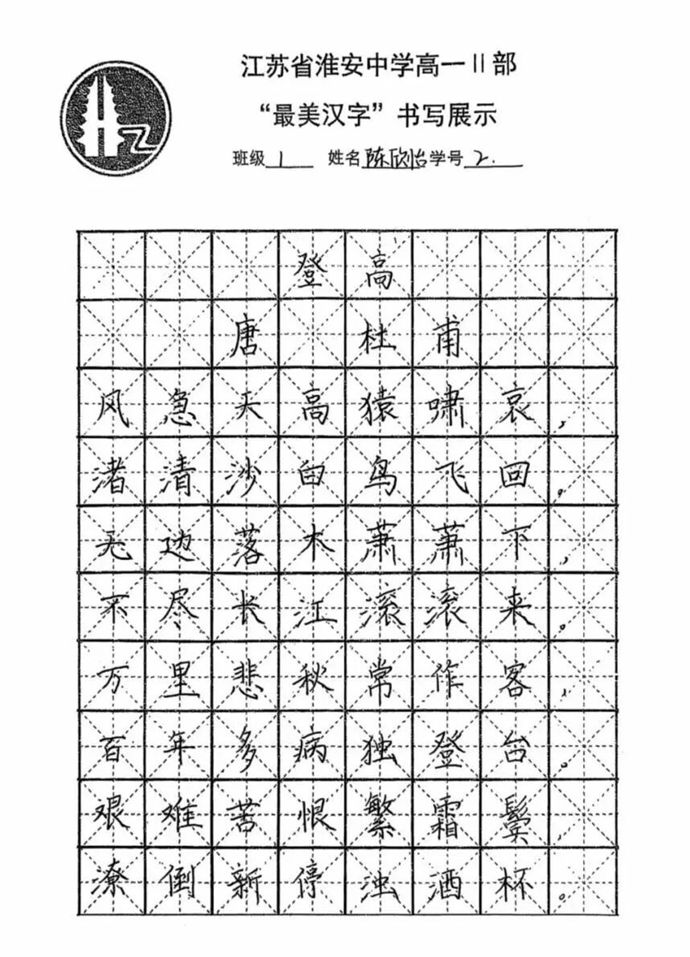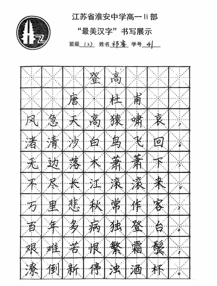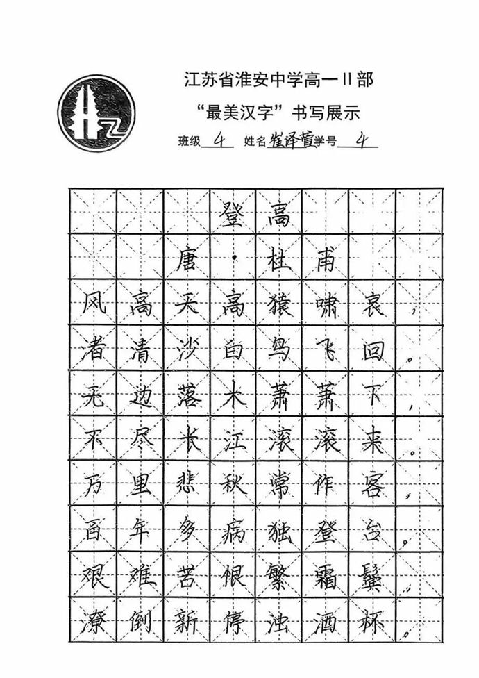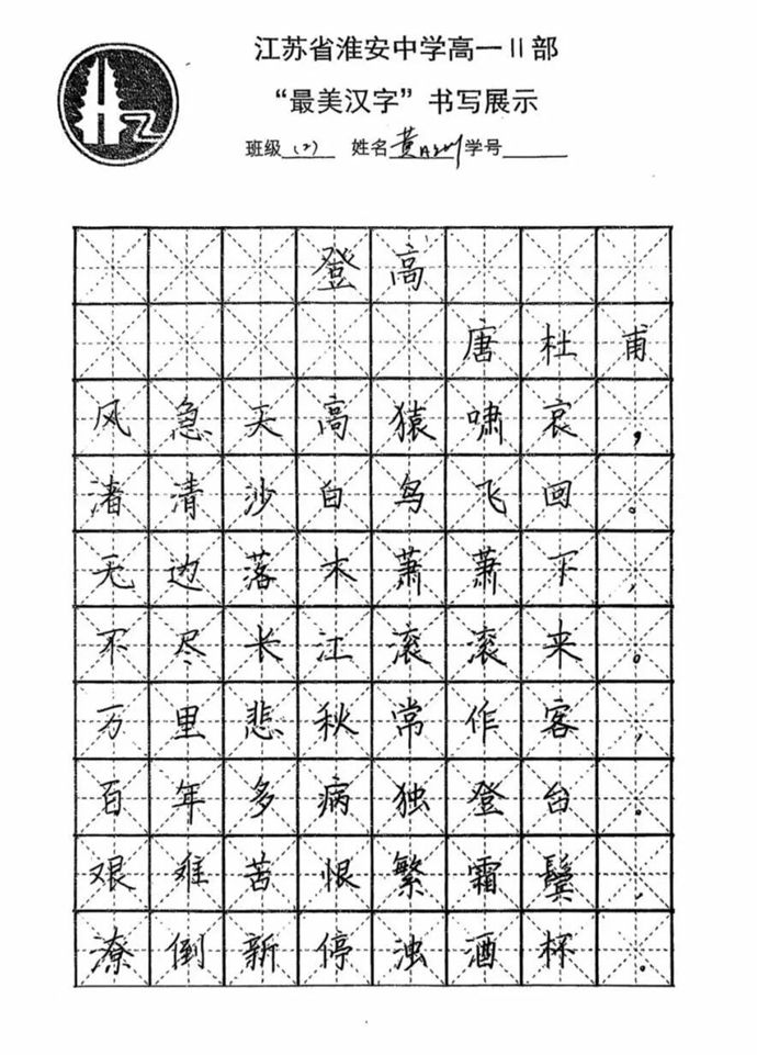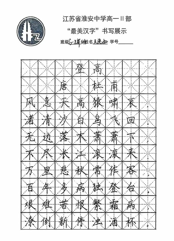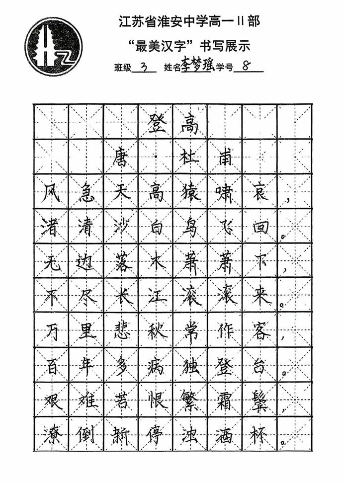 各班同学积极响应,利用课余时间反复练习,精选经典诗词、名言警句作为书写内容,既有“长风破浪会有时,直挂云帆济沧海”的豪情壮志,也有“苔花如米小,也学牡丹开”的细腻温情。最后统一选用唐代诗人杜甫的经典作品《登高》作为展示内容,每一幅作品都饱含着学生对汉字艺术的热爱与对传统文化的敬意。