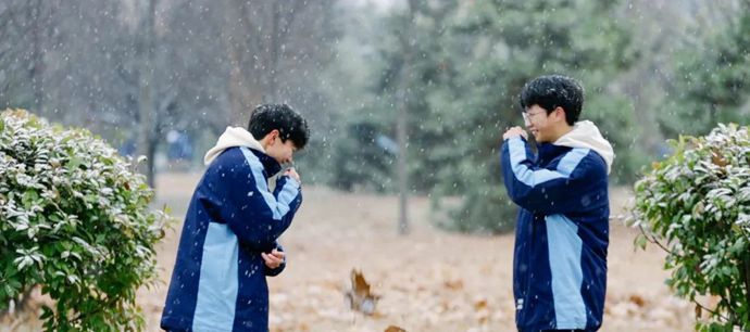霜雪覆上竹梢,少年呵出的白雾与奔跑的足球一同划破寒冬。教室窗前,红笔批注映着雪光;暮色中,归鸟如墨痕掠过天际,书写冬日的坚韧与温情。雪地里不知是谁堆起的雪人,一束红绸成了最美的妆点。