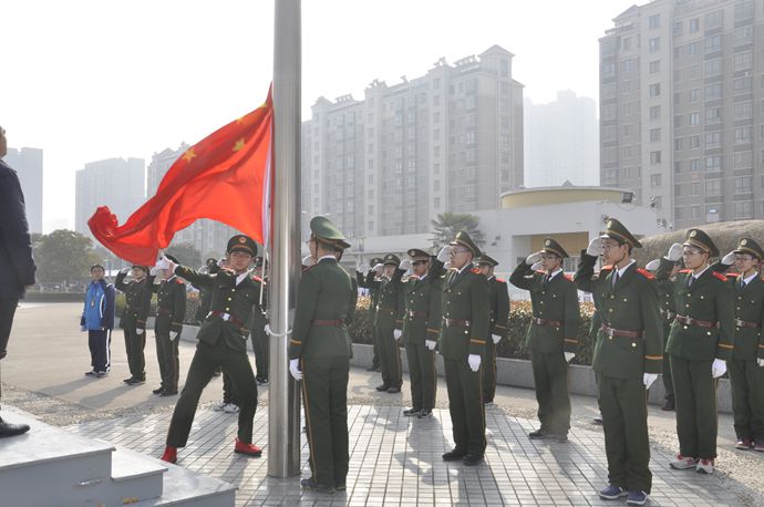 我校每周一在翔宇楼前广场举行升旗仪式