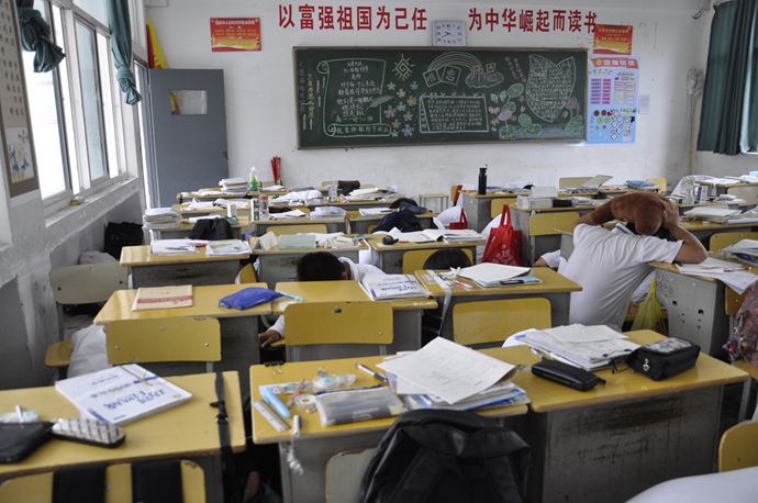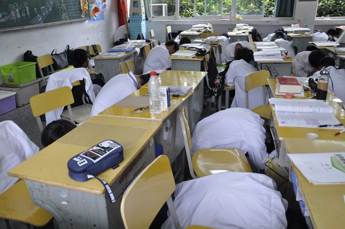 当第一次警报声响起时,各班班主任指挥学生迅速抱头、闭眼,就近躲避在课桌下,用双臂或坐垫或其它柔软物品等保护好头部,尽量蜷曲身体,降低身体重心,全程历时三分钟。