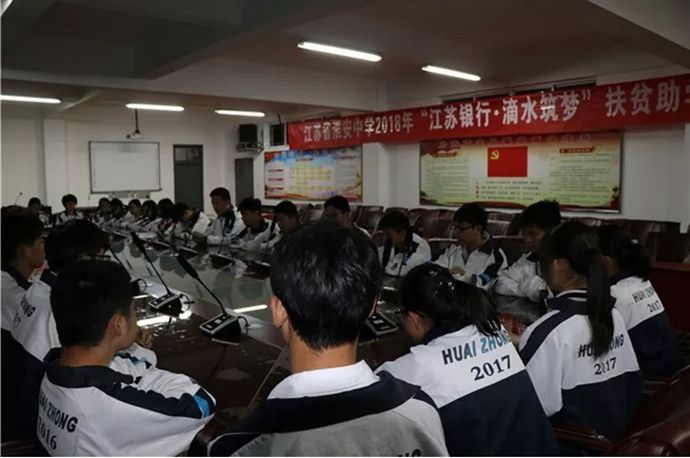 “江苏银行滴水•筑梦”助学扶贫工程是由江苏省扶贫开发与老区建设“三会”和江苏银行联合举办。助学的对象主要是非义务制教育高中阶段的贫困生,每生每年资助2000元,人均三年受赠6000元。