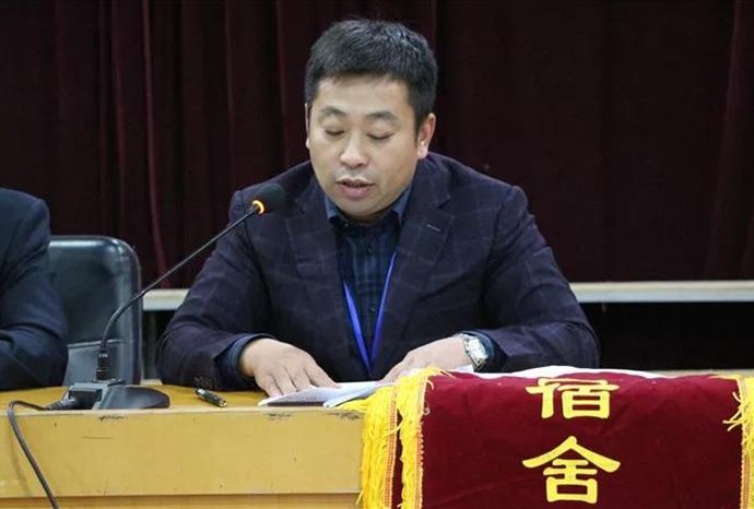 会议第三项,葛金雷校长助理、李军副主任、陈群杰副科长为获得“文明宿舍”称号的57个寝室室长颁发了锦旗。