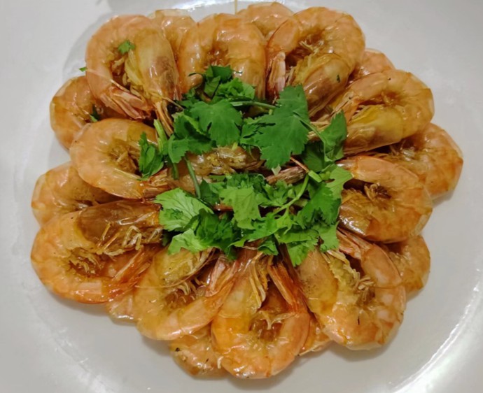 3.将过好油的基尾虾下入锅中继续翻炒,加调料炒至入味装盘;