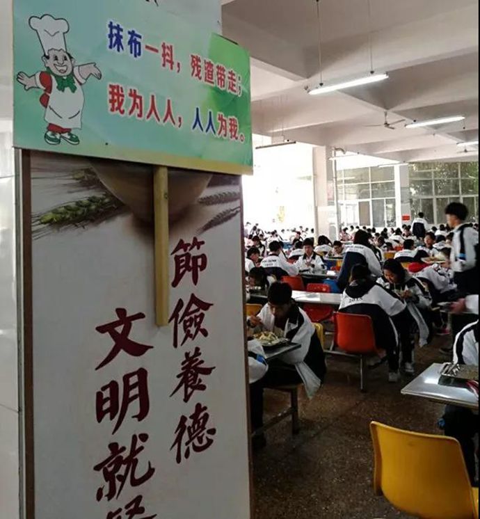 每天中午11点45分,走进江苏省淮安中学食堂,透过熙熙攘攘的就餐人群,在每个餐厅都会看见三四个学生在擦桌子,他们身穿校服,手臂戴着红袖章,两人一组在不停忙碌着,面容稚嫩但手脚麻利,还没待人看清楚袖章内容,便消失在茫
