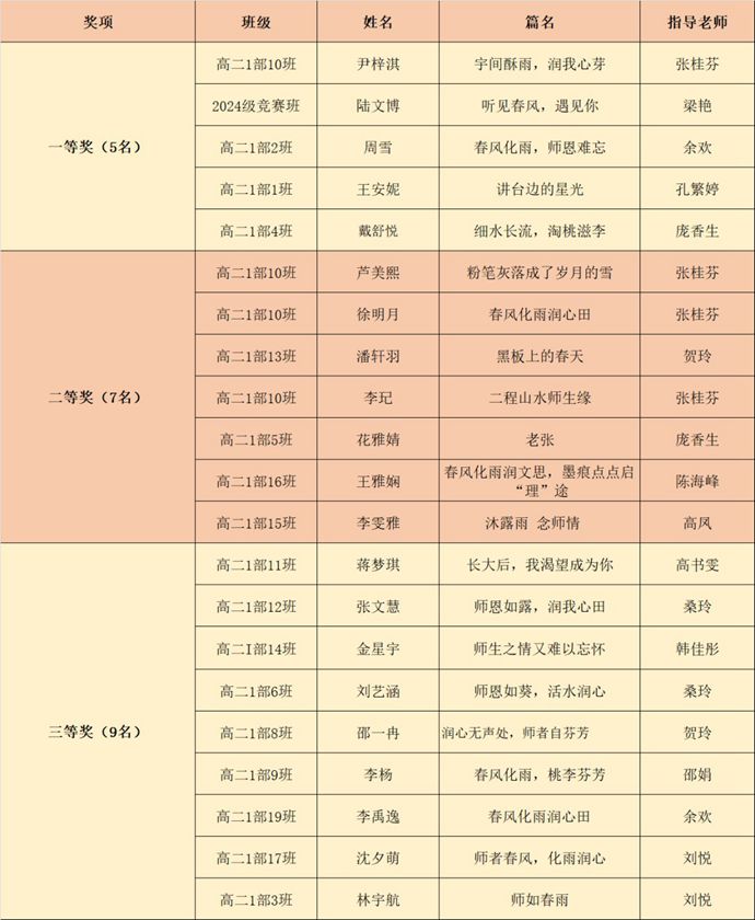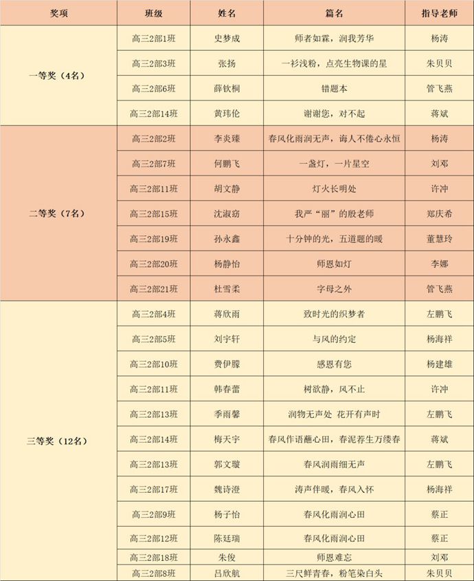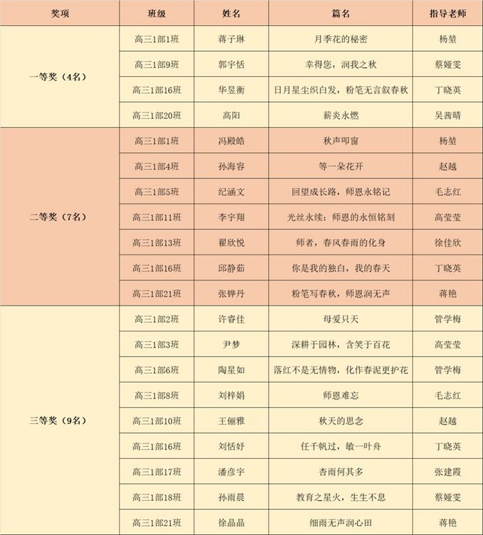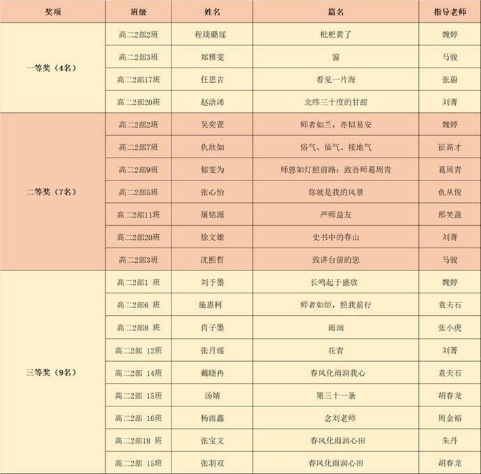 “春风化雨润心田,笔墨丹青谢师恩。”近日,江苏省淮安中学团委、语文教研组联合举办的第41届教师节征文比赛,获奖名单正式揭晓。经过三轮严格评审,最终评选出了一、二、三等奖。