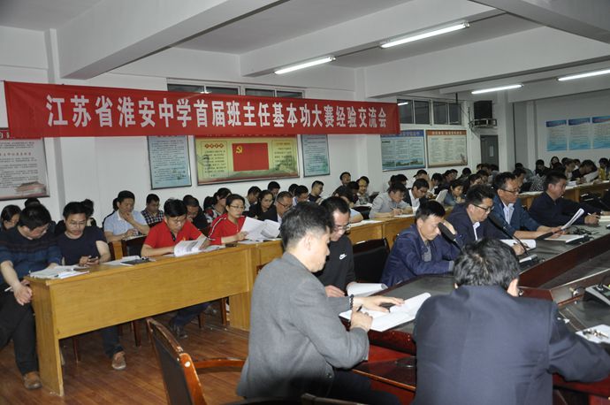 5月7日晚,校学工处在会议室召开首届班主任基本功大赛经验交流会,全校班主任参加了交流会?;嵘希竦靡坏冉钡乃奈话嘀魅尉筒稳墓毯途樽髁私涣?。