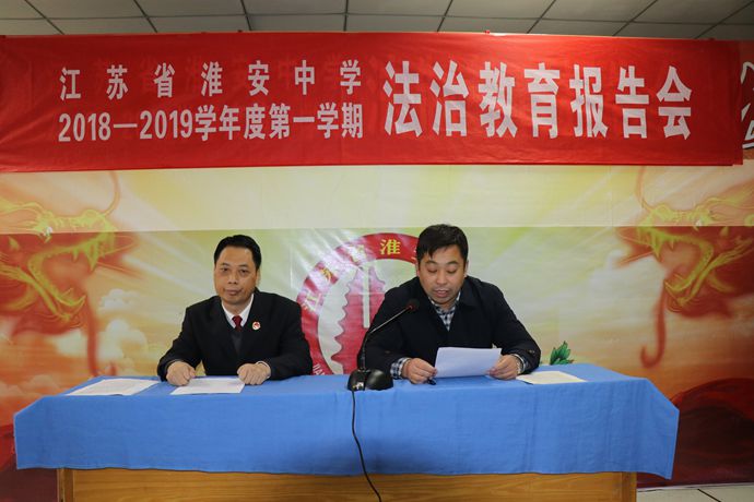我校举办以“加强安全守法教育,争做文明淮中学生”为主题的法治教育报告会