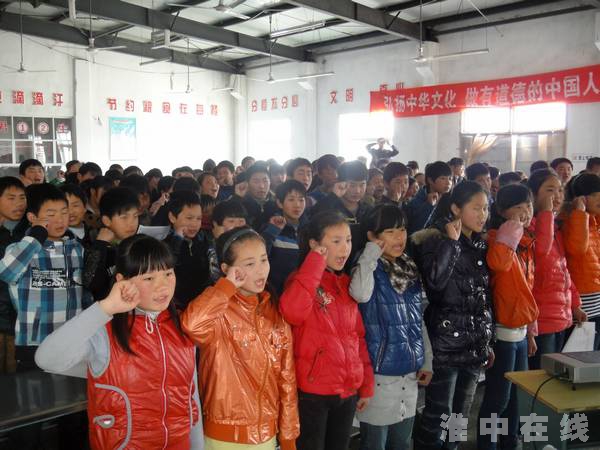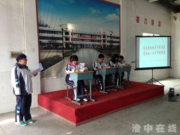 活动由我校高二II部20班张如同学主持,她带领我校学生和三堡中学初一初二年级全体师生重温总理生平事迹:从“立志”、“求学”、“报国”等八个角度,解析不同时期总理的精神品质。整个宣讲过程借助多媒体展示,形式多样:有“课前检测”、“现场提问”、“交流互动”、“诗词朗诵”,“图文并茂”地述说与总理有关的故事。同学们听得认真、听得感动,他们一起郑重地许下誓言:以富强祖国为己任,为中华崛起而读书。