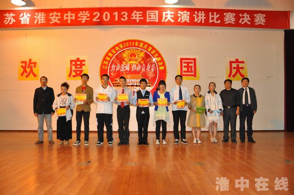 为庆祝建国64周年,丰富学生课余文化生活,增加学生的爱国情感,教育学生以实际行动热爱祖国,淮安中学举办以“我的校园,我的青春梦”为主题的演讲比赛活动。此次活动自开学初发出通知以来,得到了全校广大同学的积极响应,共有120名选手参赛。经过预赛、复赛的层层选拔,最终共有18名选手进入决赛。