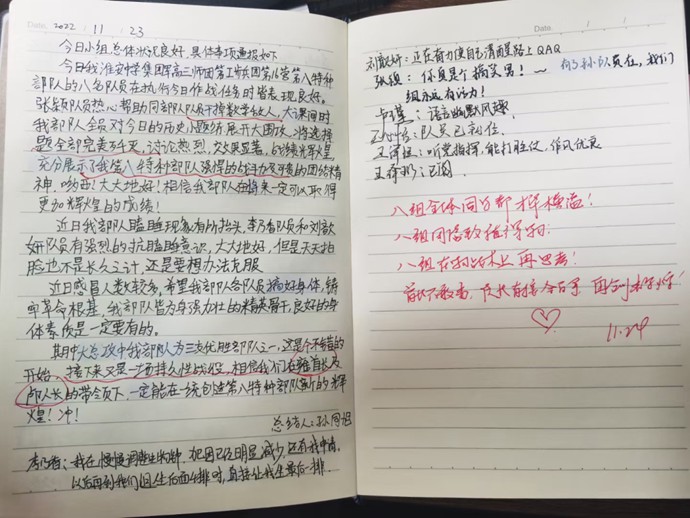 在日常的小组管理之中,除了每周日的小组会议,我和孩子们还通过小组的记录本进行交流。他们将自己每一天发生的组内的“小秘密”都记录在本子上,有的时候是迷茫,有的时候是期待,更多时候是组内互相的鼓励。通过小组本,我能够及时了解到组内的一些情况和组员的一些情绪变化,从而相应的做出对策。同时,小组的“悄悄话”不是硬板板的报告,孩子们在本子里的语言生动有趣,活泼可爱,交流互动中充满了青春的活力。