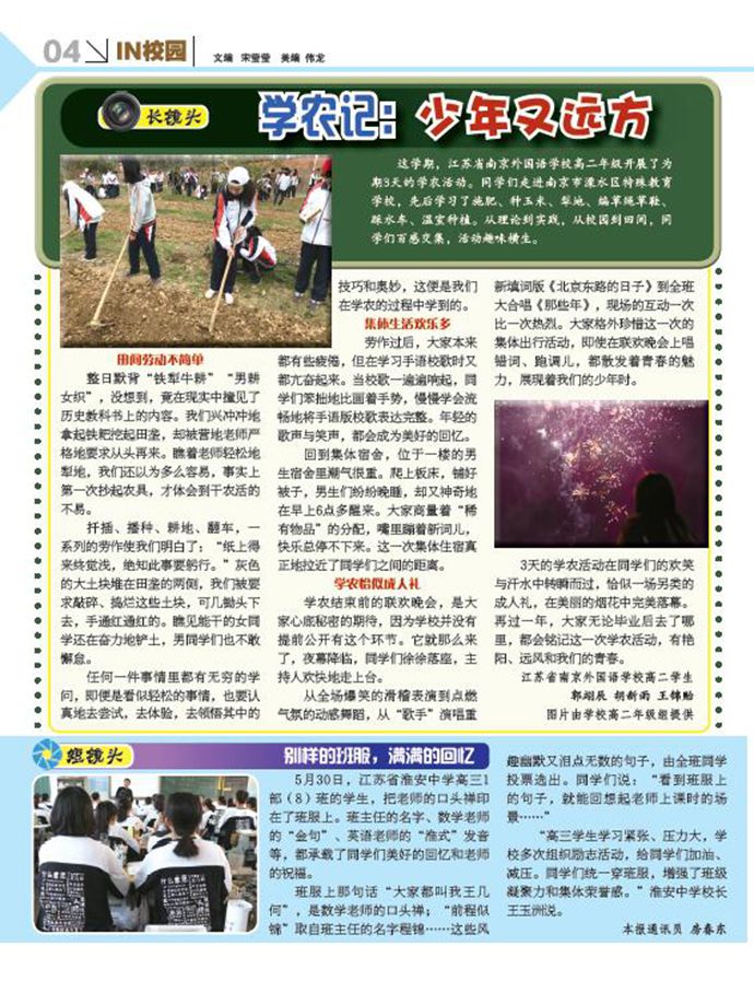2019年6月18日,《中国中学生报》4版以“别样的班服,满满的回忆”为标题,报道了淮安中学高三1部(8)班学生班服上印老师口头禅这件事。《中国中学生报》是由中国共产主义青年团中央委员会主管,中国少年儿童新闻出版总社主办。