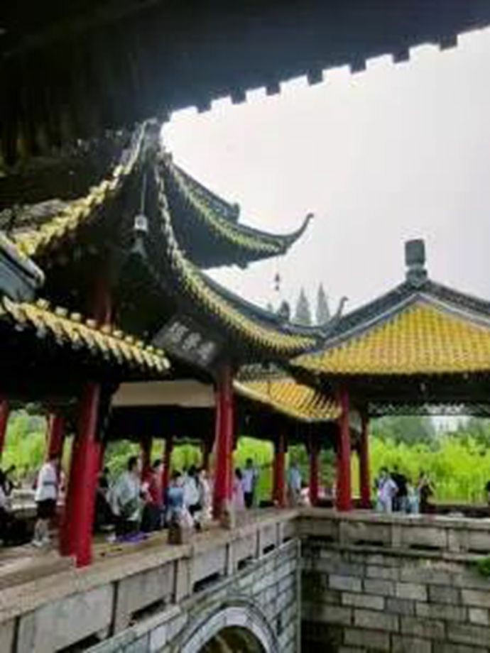 忽然有雨丝斜斜地飘下来,起初是零星几点,转瞬就连成了线。慌忙躲进徐园的廊下,倒得了意外的闲趣。雨打在灰瓦上,“滴答”声叠成一片,顺着飞檐垂下的雨帘,像无数条晶莹的珠链。远处的湖面笼在白茫茫的水汽里,堤上的柳丝成了模糊的绿烟,近处的芭蕉叶上,雨珠滚来滚去,坠地时溅起小小的水花。这雨不疾不徐,倒像给瘦西湖蒙了层纱,添了几分朦胧的诗意。
