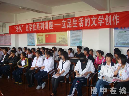 9月12日上午,江苏省淮安中学淮风文学社邀请校教学科研处副主任胡鹤毅为文学社近百名新老成员做了一场精彩的文学创作讲座。