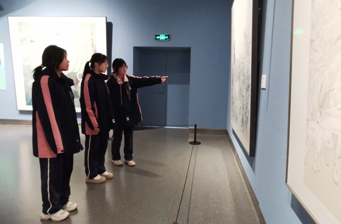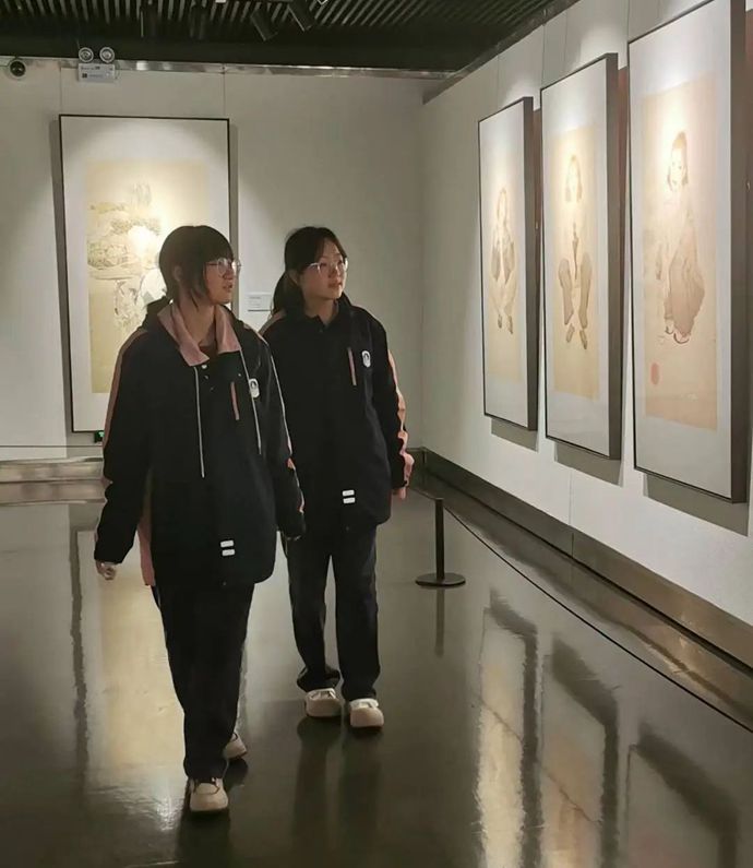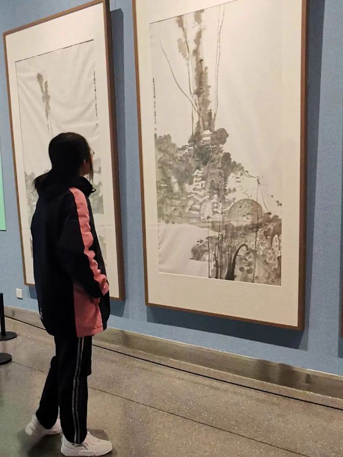 在美术馆内,以“金陵风骨·其命维新”为主题的2024江苏省国画院中国画作品展正在举办,展厅里的作品形式多样、题材丰富,既呈现出现实生活的多姿多彩,同时也展现了传统绘画背后的文化内涵和精神力量,这些作品给同学们带来了很深的心灵震撼。