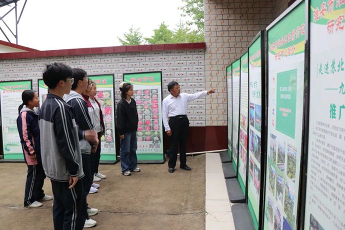进入荷花研究中心,同学们在中心负责人赵峰喜的带领下,观看宣传展板,了解荷花、睡莲等品种研发过程等情况,聆听了周总理当年号召中共南方局同志学习“六月风荷精神”的革命历史,更加清晰地了解了周总理的“出淤泥而不染”的高尚品质。