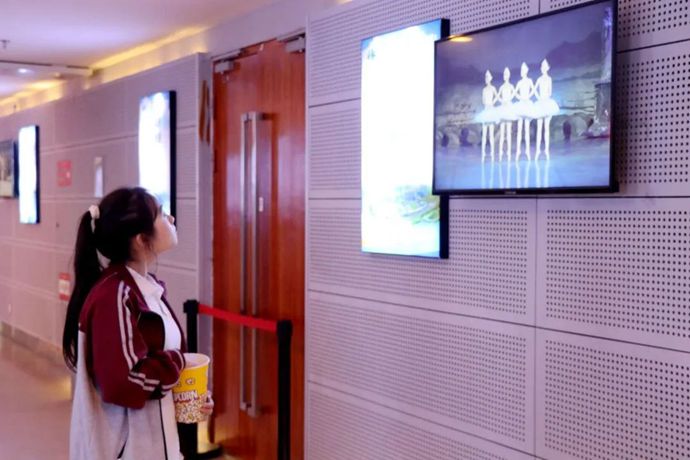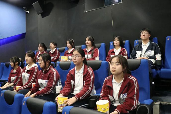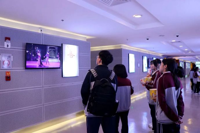 在淮安大剧院影城内,同学们饶有兴致地观看剧院场景布置情况,随后观摩了电影《安国夫人》。