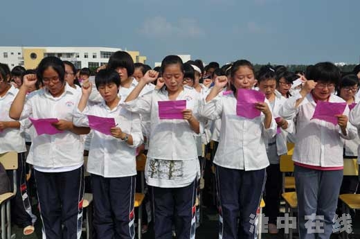 学生代表、教师代表、家长代表分别作了发言后,同学们进行了集体宣誓。“奋斗三百天,不负父母的期盼,不负恩师的厚望;我们注定成功,我们必将辉煌……”响亮的口号声在校园上空久久回荡。一部还在会上举行了“18岁成人礼”。