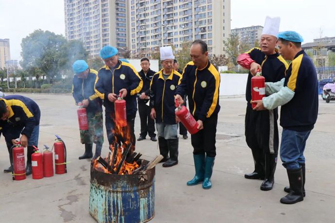保卫科科长胡红祥为保安和食堂员工作了消防安全知识培训。他从“日常安全检查”、“油炸食品管理”等方面作了提醒,讲解了灭火基本知识和灭火器材的使用。他要求食堂员工和保安要重视消防安全,熟练掌握灭火器材的使用。
