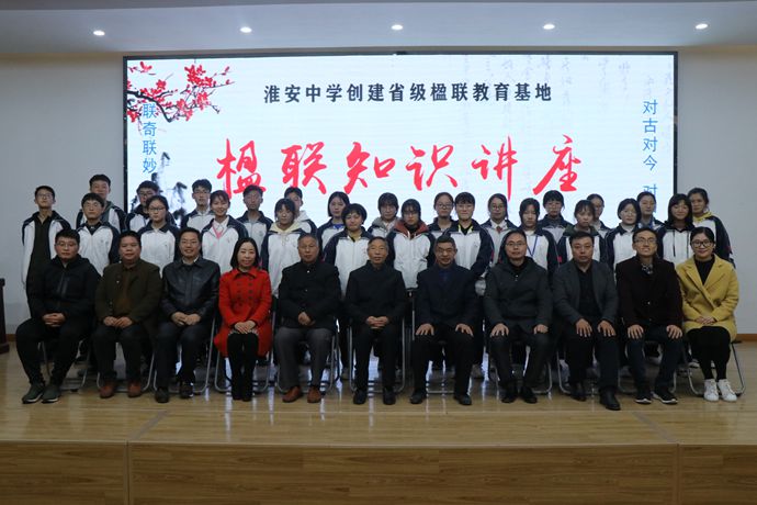 近年来,淮安中学根据学校实际情况,积极扎实推进楹联基地、诗香校园的创建活动,大力开展以古典诗词为主要内容的传统人文教育,让诗词走进校园。学校多次举办古典诗词、楹联知识讲座,提高了同学们对传统文化的认识,激发了同学们创作楹联的热情,推进了校园文化的发展与繁荣。