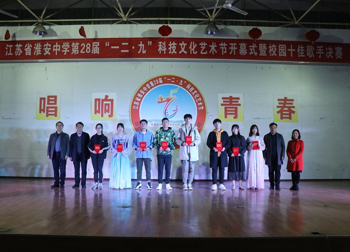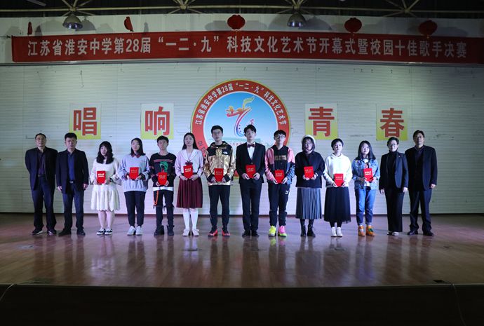 用声音演绎青春,用活力诠释生命。11月16日晚,淮安中学举行第28届“一二•九”科技文化艺术节开幕式暨校园“十佳歌手”决赛。来自高一、高二、高三的18名选手角逐校园“十佳歌手”桂冠。淮安中学校长于敏等出席活动。